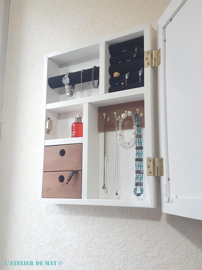 Géniale cette petite armoire à bijoux. Elles ont de la chance tes femmes d’avoir un si bon bricoleur à la maison ! Merci pour les explications bien détaillées. Bravo pour les coins dorés, tout est parfait. BRAVO