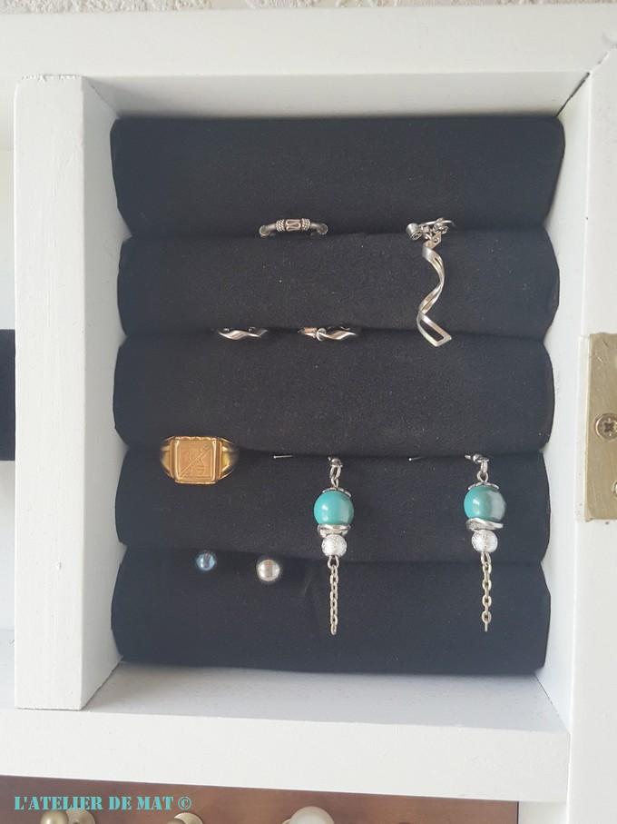 L’intérieur n’a plus rien a voir avec la boite à clés d’origine. Il offre désormais pleins de petites solutions pour ranger toutes sortes de bijoux.