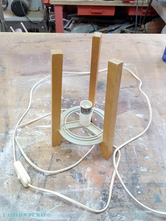 Pour le câble électrique j’ai fait aussi dans l’économie. Pas la peine d’acheter du neuf quand on a ce qu’il faut sous la main. Ma petite femme a cassé le verre de cette lampe Ikea il y a une douzaine d’années et depuis je l’ai conservée dans un coin en me disant qu’elle pourrait toujours me resservir;).