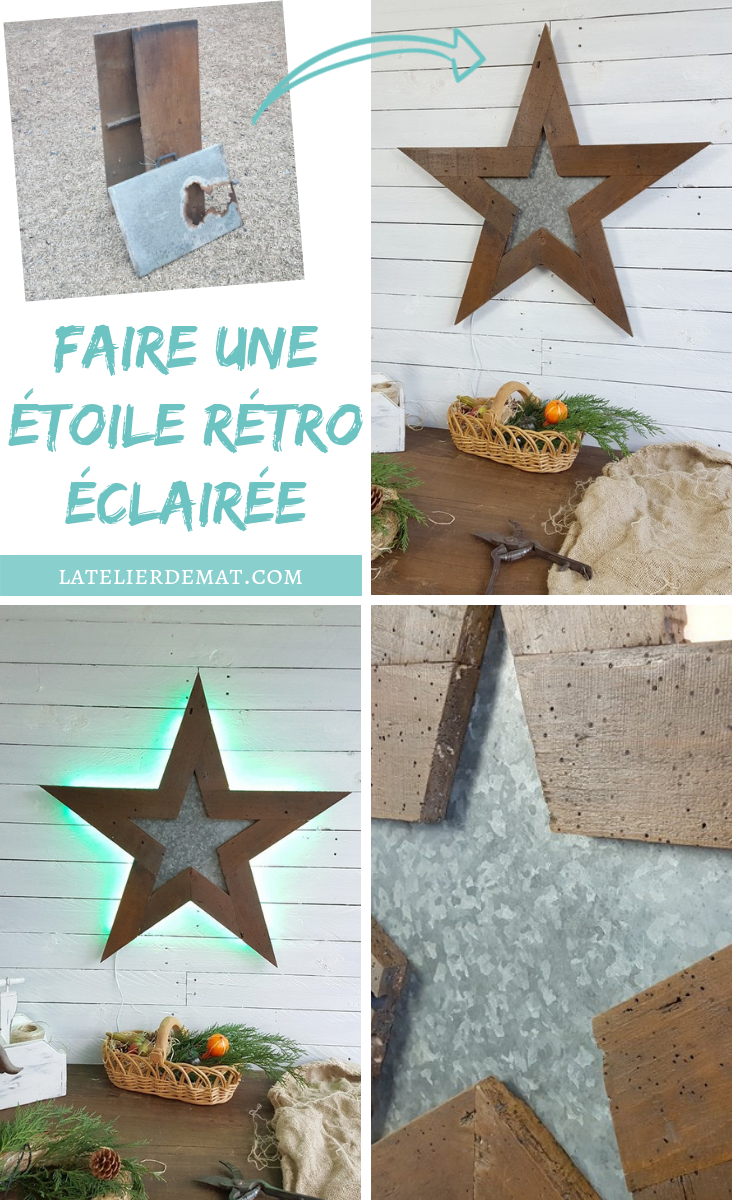 En cette fin d’année quoi de mieux que de piocher dans le bazar de mon petit atelier afin de trouver de quoi faire un truc bien sympa ? Si en plus cela me donne l’occasion de réaliser un projet qui me traîne dans la tête depuis une bout de temps, c’est le jackpot ;). Alors je sais que ces deux vieilles planches et cette taule complètement rôtie ne sont pas très sexy comme cela, mais imaginez les associées en une belle étoile au style farmhouse et cela pourrait changer la donne ;).