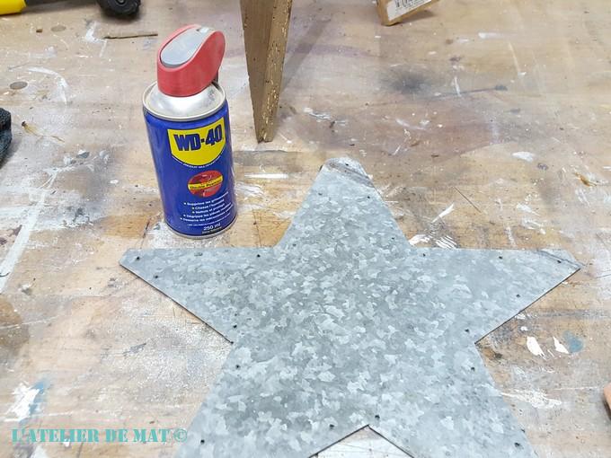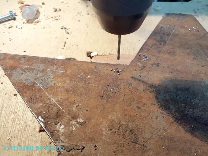 Une fois l’étoile en tôle coupée, j’ai percé les côtés au jugé.