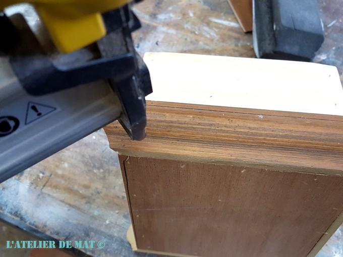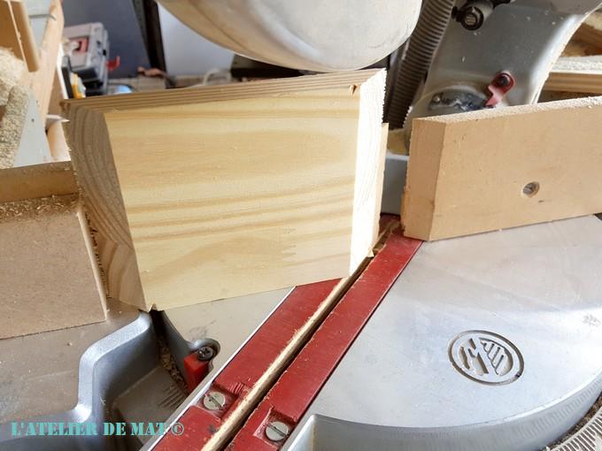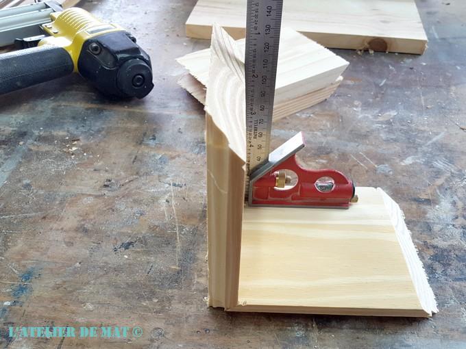 J’ai choisi de faire un assemblage à 45° afin qu’il soit le plus propre possible. Encore une fois, le système de la cale pour ne pas avoir à mesurer s’est avéré très pratique.