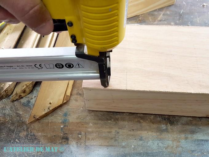 Et comme on ne change pas une équipe qui gagne, j’ai de nouveau utilisé mon pistolet à clous pour fixer les baguettes aux boites. Quand je vous dis que j’adore cet outil, je ne vous mens pas 😀 .