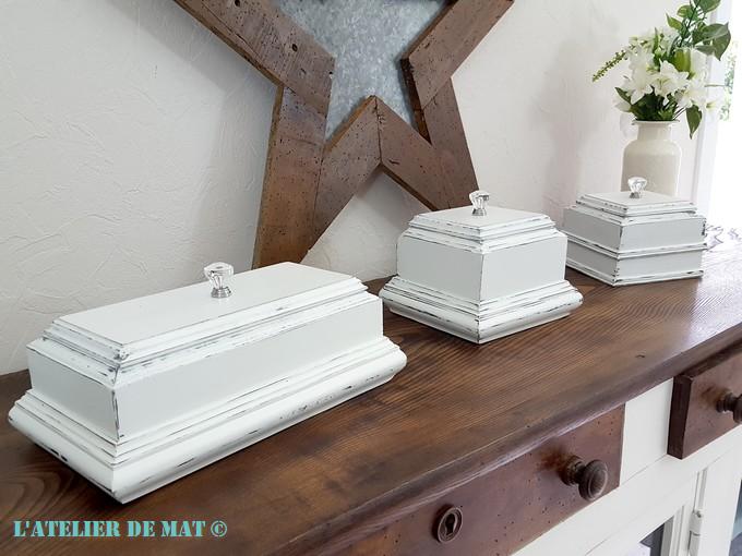 Car même si j’ai pensé à un joli rouge basque, je me suis dit que le blanc siérait beaucoup mieux à ces trois boites. J’espère que le résultat ne me détrompera pas.