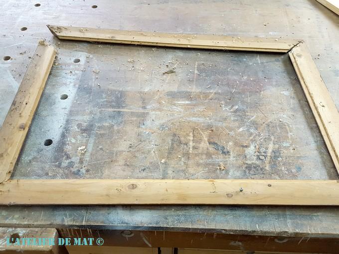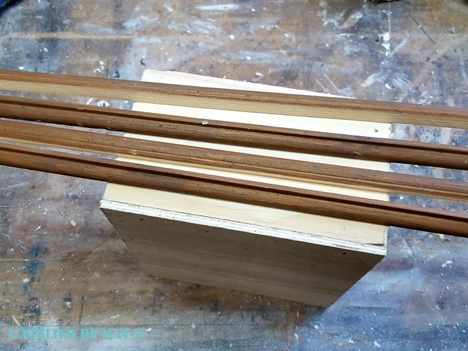 Après cela le démontage a été plus que facile. Quelques agrafes à enlever dans les angles et c’était bon, j’avais mes baguettes…. mais je n’avais pas encore les boites sur lesquelles les mettre.
