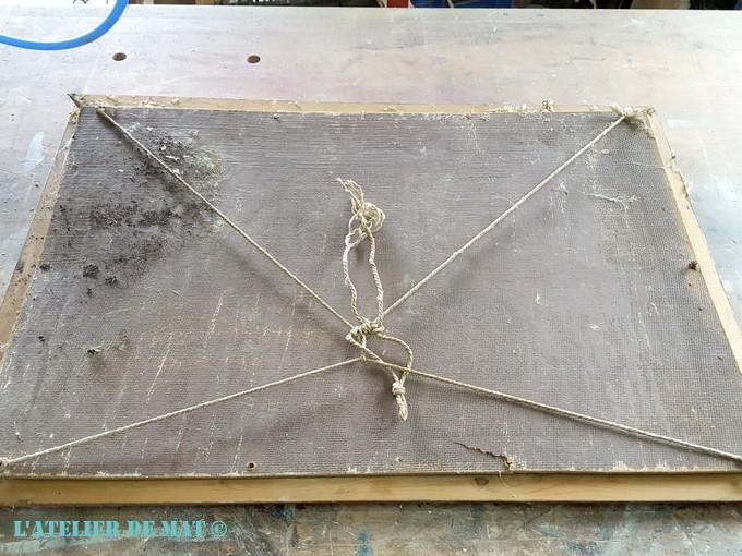 Première chose à faire: enlever le fond du cadre. Il a juste suffi d’ôter quelques vieilles vis un peu rouillées et cela n’a pas été d’une grosse difficulté.