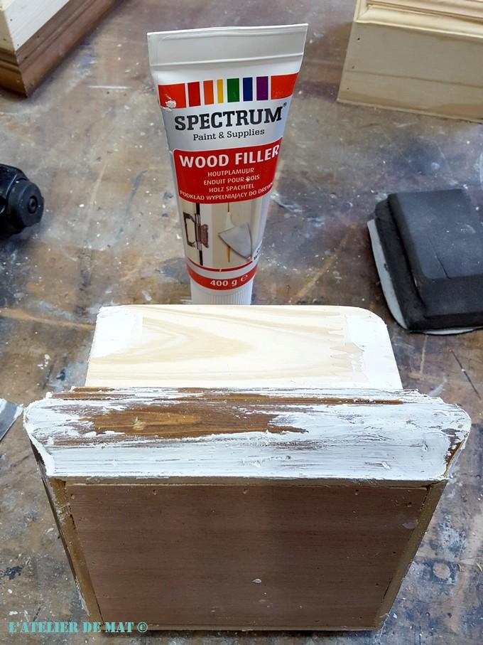 Je l’ai utilisée par exemple sur la troisième boite pour passer dans les plats des moulures ou encore pour souligner toutes les petites parties planes du couvercles.