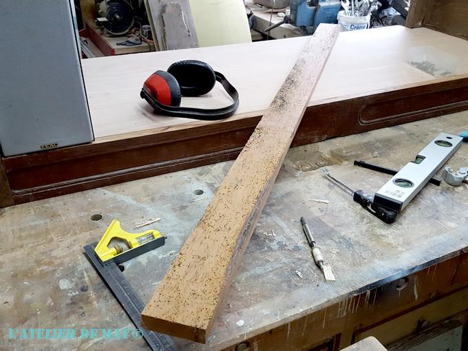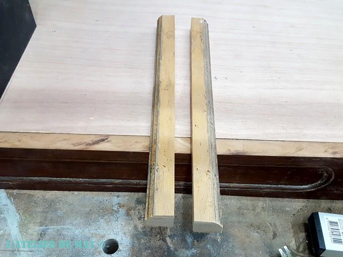 Et justement pour la construction du plateau j’ai hésité entre plusieurs solutions et je me suis rappelé que j’avais de vieilles rallonges dans un coin qui me restaient du relooking de la banquette en skai. Après quelques mesures cela devrait passer pile-poil . Il fallait juste que j’effectue quelques découpes 😀 .