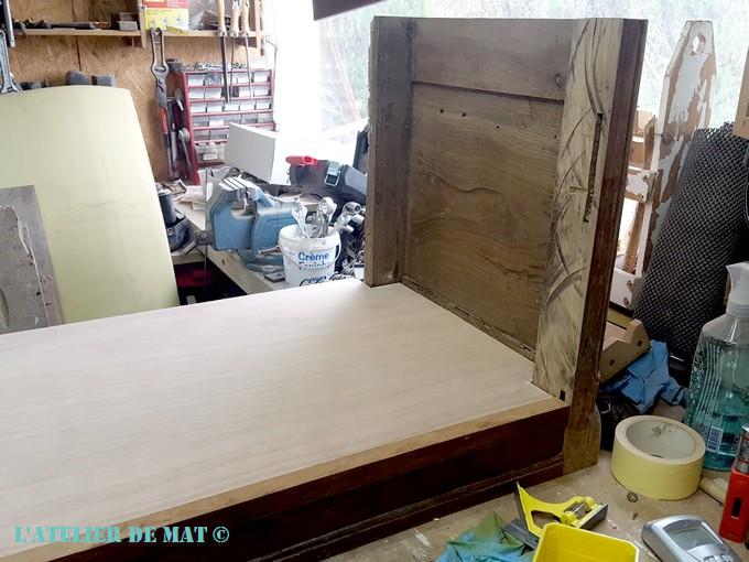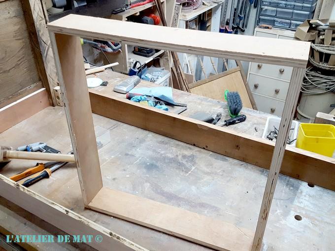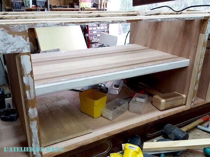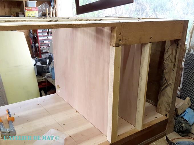 Voila ce que cela donne désormais ! Il me reste encore à poncer le tout et à faire le plateau du meuble mais ça avance 😉 .