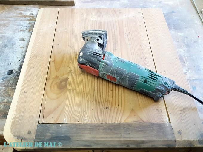 La couleur du plateau ressort un peu plus orangée qu’en réalité. Pour fixer celui-ci, j’ai simplement utilisé des vis que j’ai vissées par le dessous.