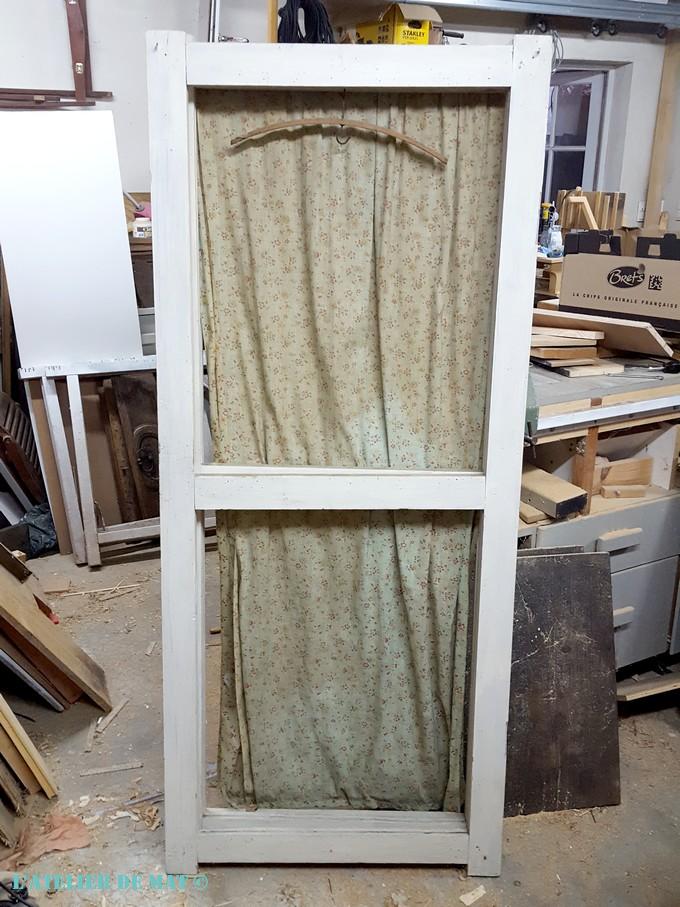 Ma télé étant assez lourde je ne pouvais pas la fixer facilement au mur en placo. Comme je suis en location les gros travaux étaient exclus. J’ai alors eu l’idée de fabriquer une structure qui ne nécessiterait que quelques trous en me servant de ce vieux paravent tout moche !