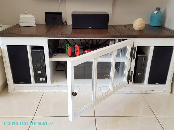 Le nouveau offre une capacité de rangement bien supérieure. Chaque chose a une place et rien ne traîne à droite à gauche. Et avec trois enfants à la maison c’est une grosse victoire ! 😉 . Le meuble accueille facilement un pc, des enceintes et des consoles de jeux.